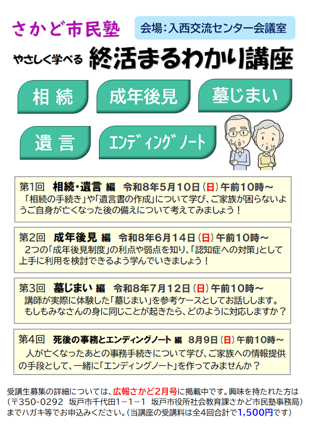毎年恒例の「さかど市民塾」の終活講座を、令和8年度も企画いたしました。